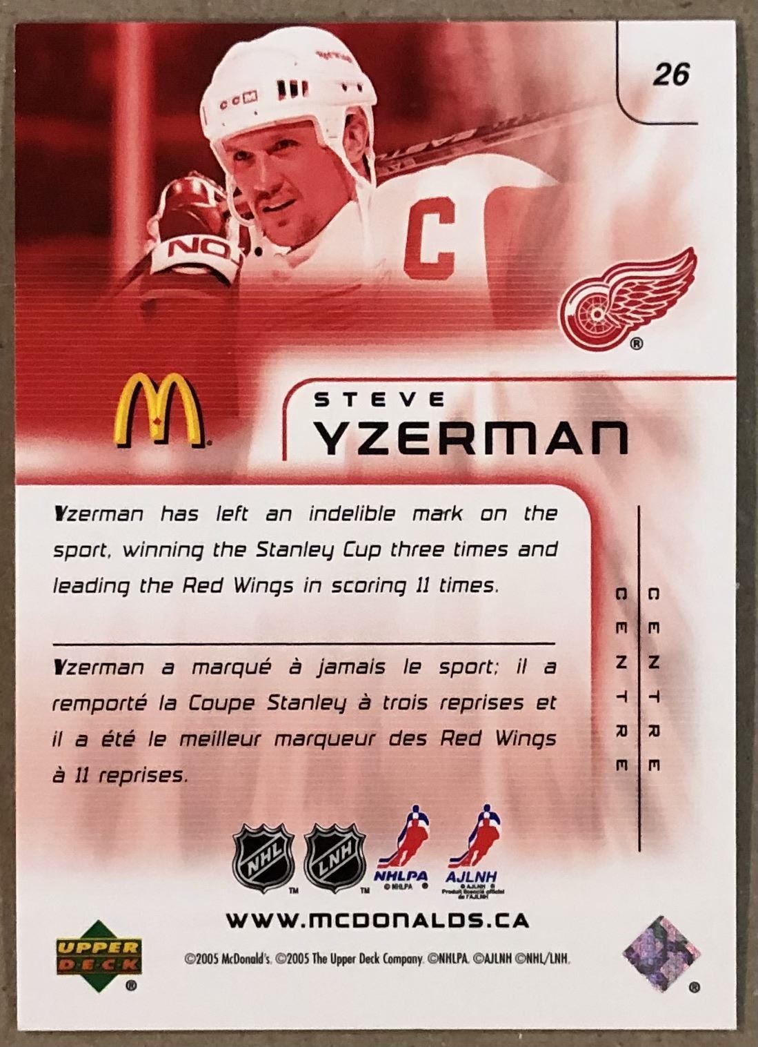 McDonald's #26 NHL, hockey, UD, regional, hall of fame