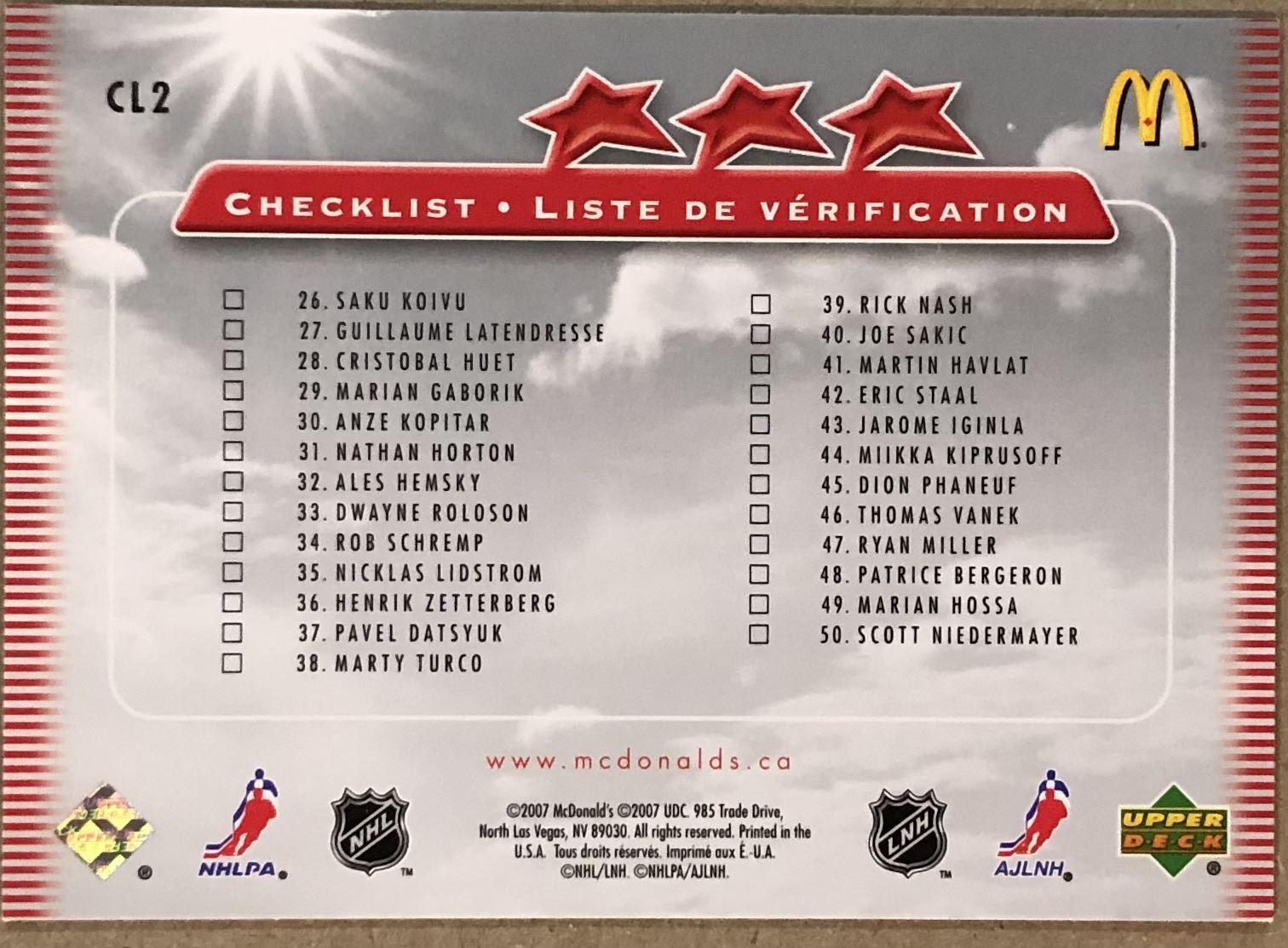 McDonald's #CL2 NHL, hockey, UD, regional, hall of fame