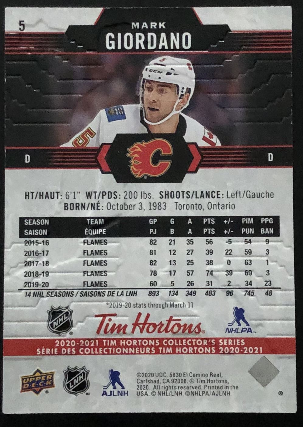 Lot 421 2020-21 UPPER DECK MARK GIORDANO