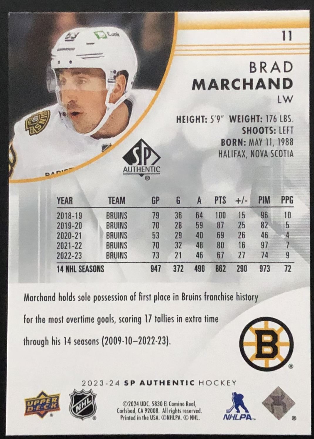 Lot 431 2023-24 UPPER DECK SP AUTHENTIC BRAD MARCHAND