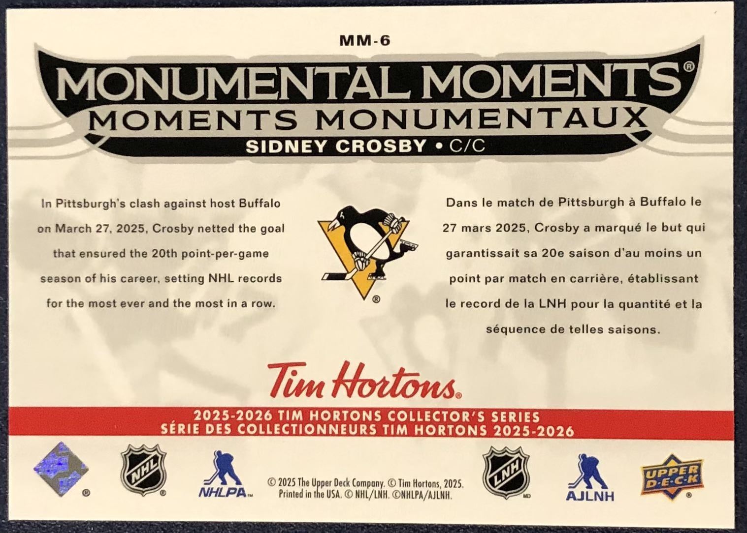 Lot 434 2025-26 UPPER DECK SIDNEY CROSBY