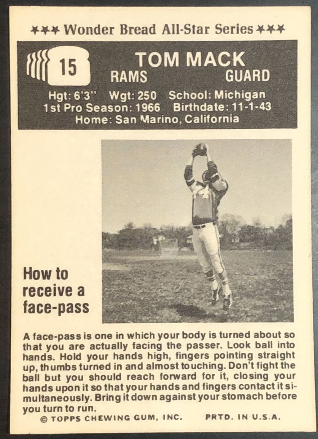 Lot 457 1974 TOPPS WONDER BREAD TOM MACK (HOF)