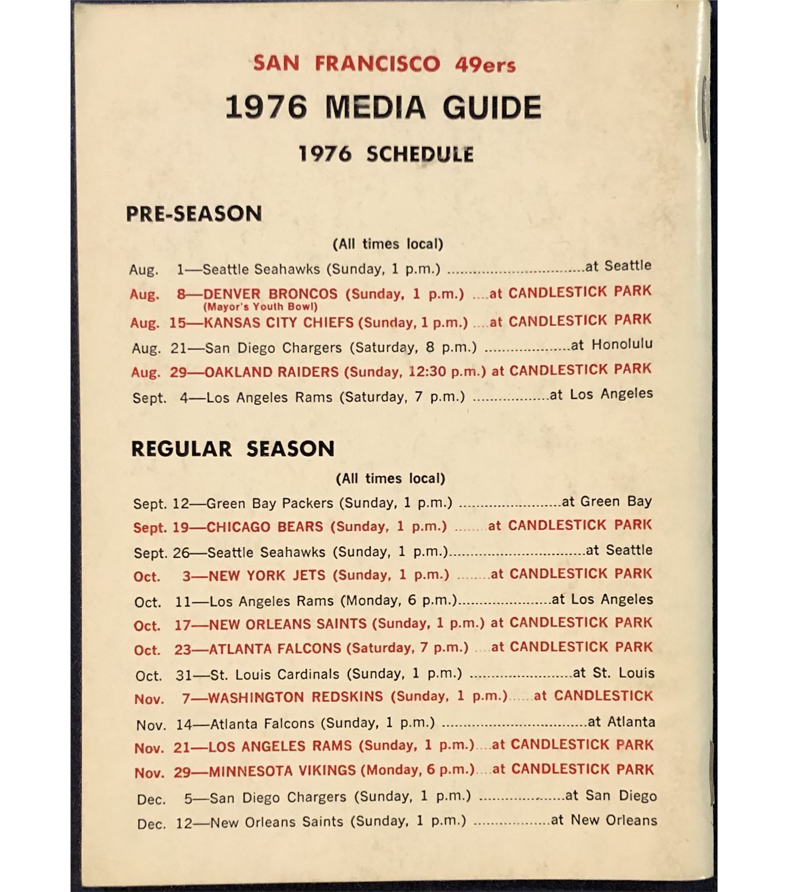 Lot 459 1976 SAN FRANCISCO 49'ers MEDIA GUIDE