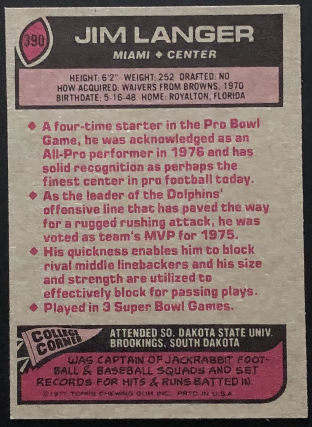 Lot 463 1977 TOPPS JIM LANGER (HOF)