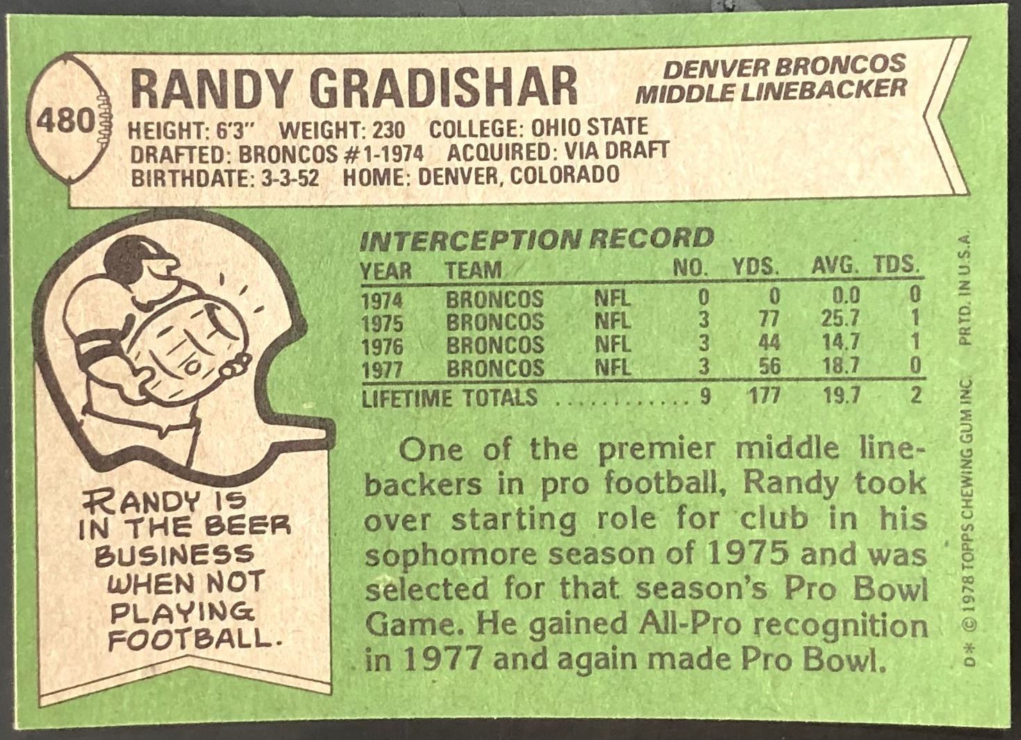 Lot 469 1978 TOPPS RANDY GRADISHAR (HOF)