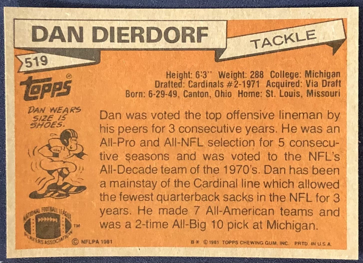 Lot 471 1981 TOPPS DAN DIERDORF (HOF)