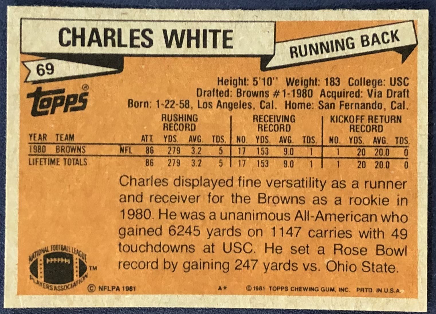 Lot 492 1981 TOPPS NFL CHARLES WHITE ROOKIE CARD