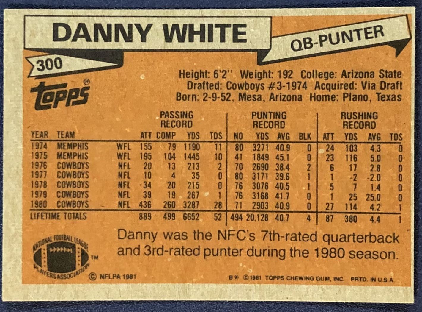 Lot 510 1981 TOPPS NFL DANNY WHITE