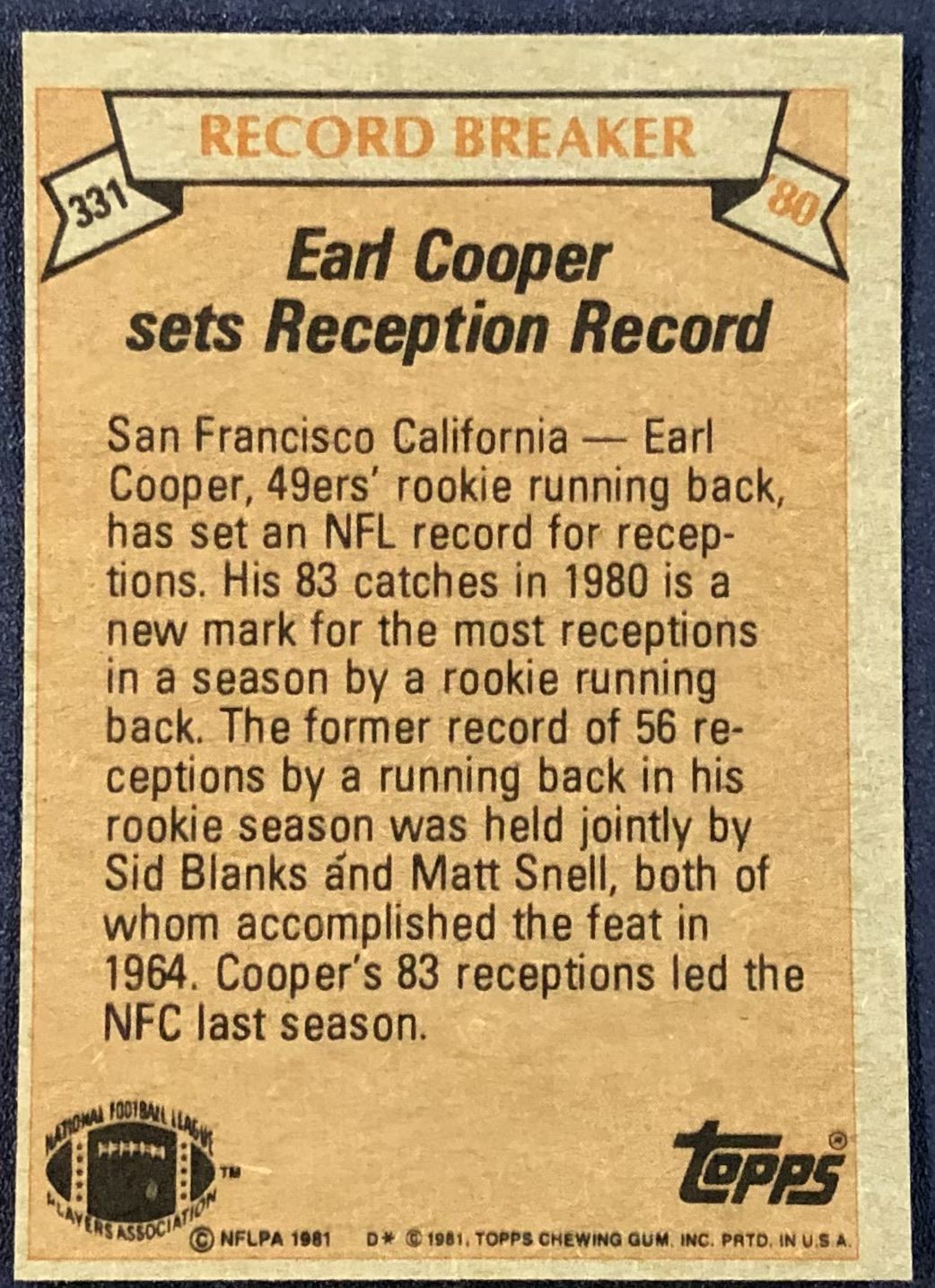 Lot 515 1981 TOPPS NFL EARL COOPER