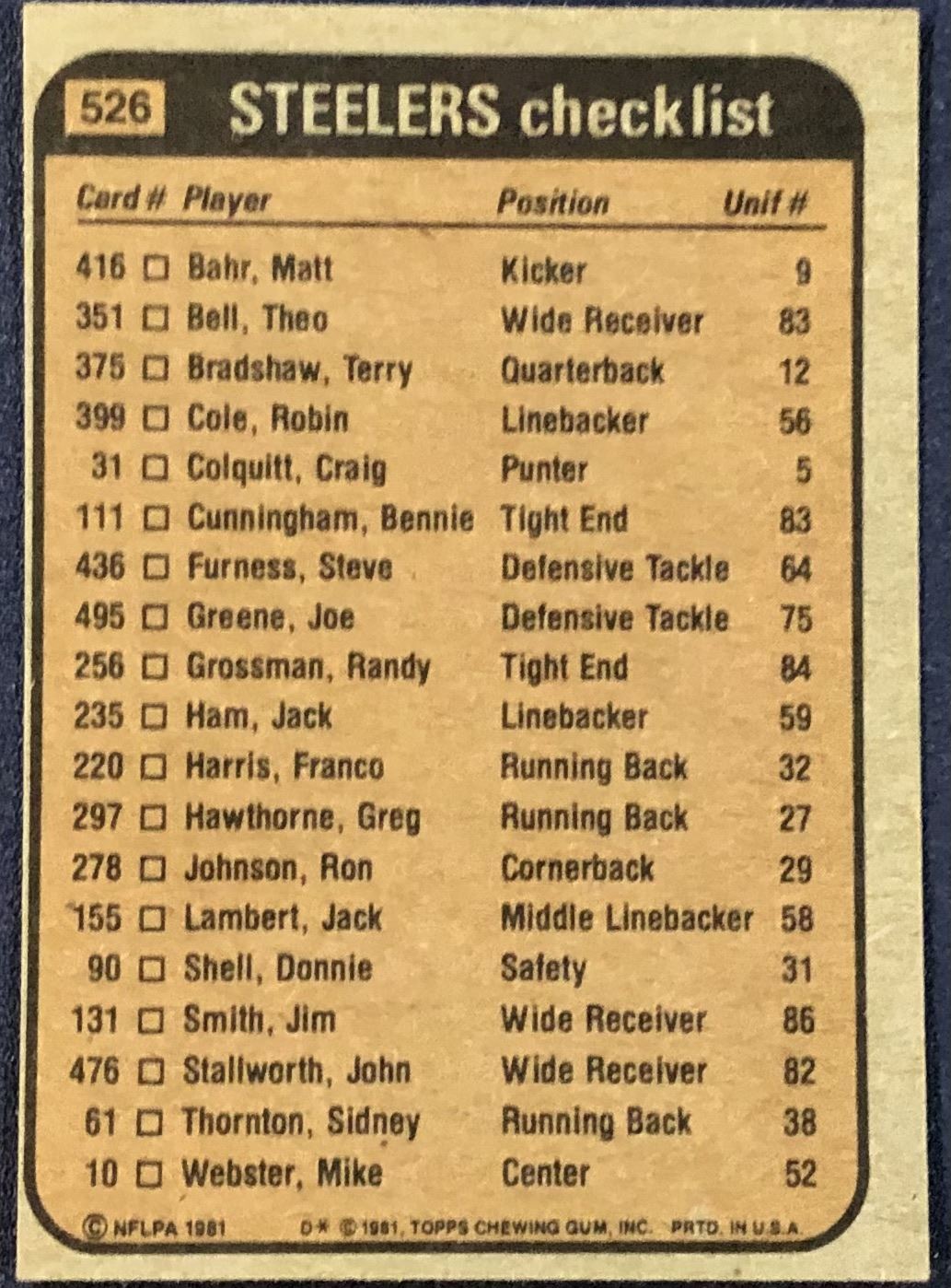 Lot 518 1981 TOPPS NFL FRANCO HARRIS (HOF)