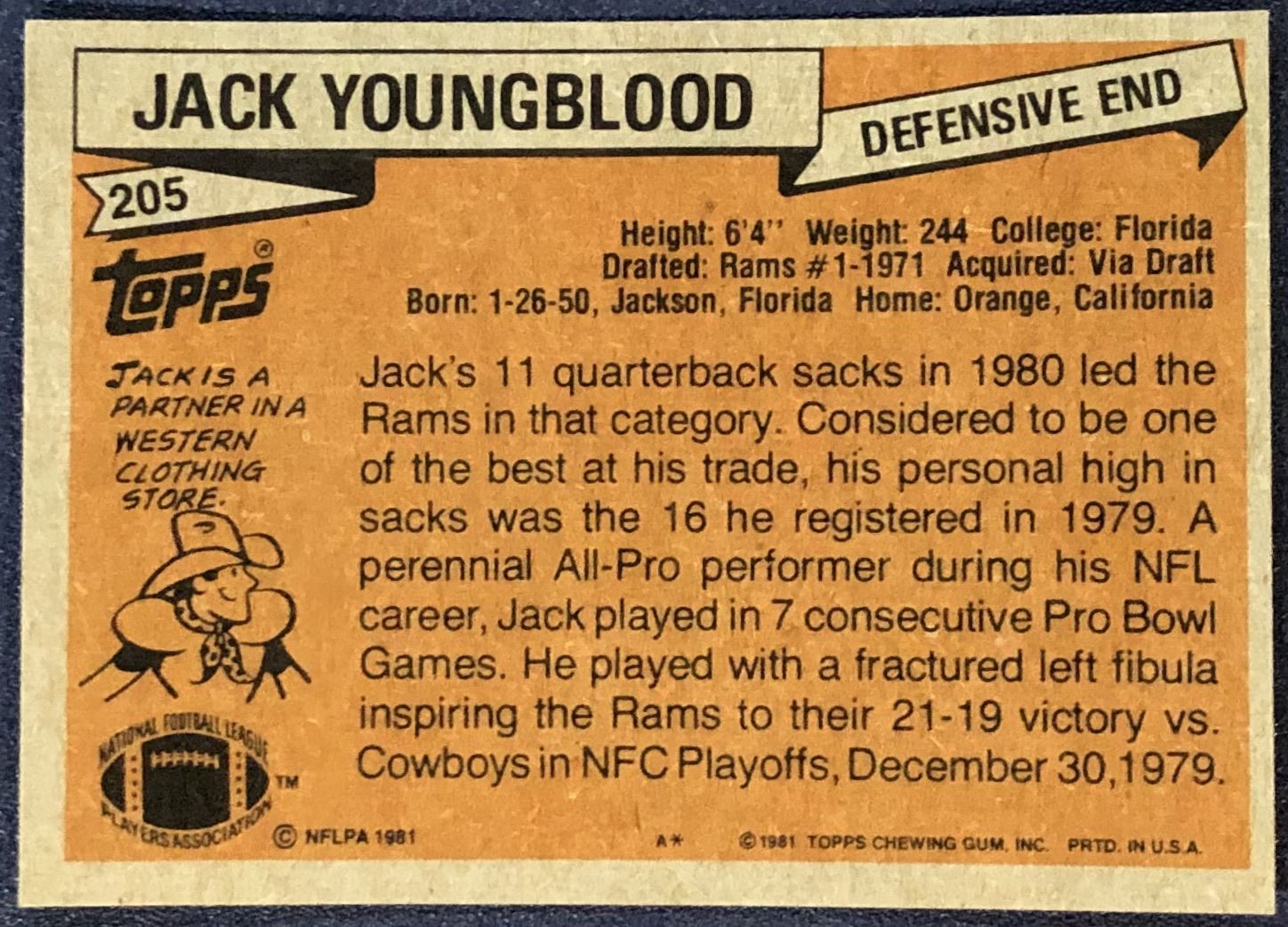 Lot 526 1981 TOPPS NFL JACK YOUNGBLOOD (HOF)
