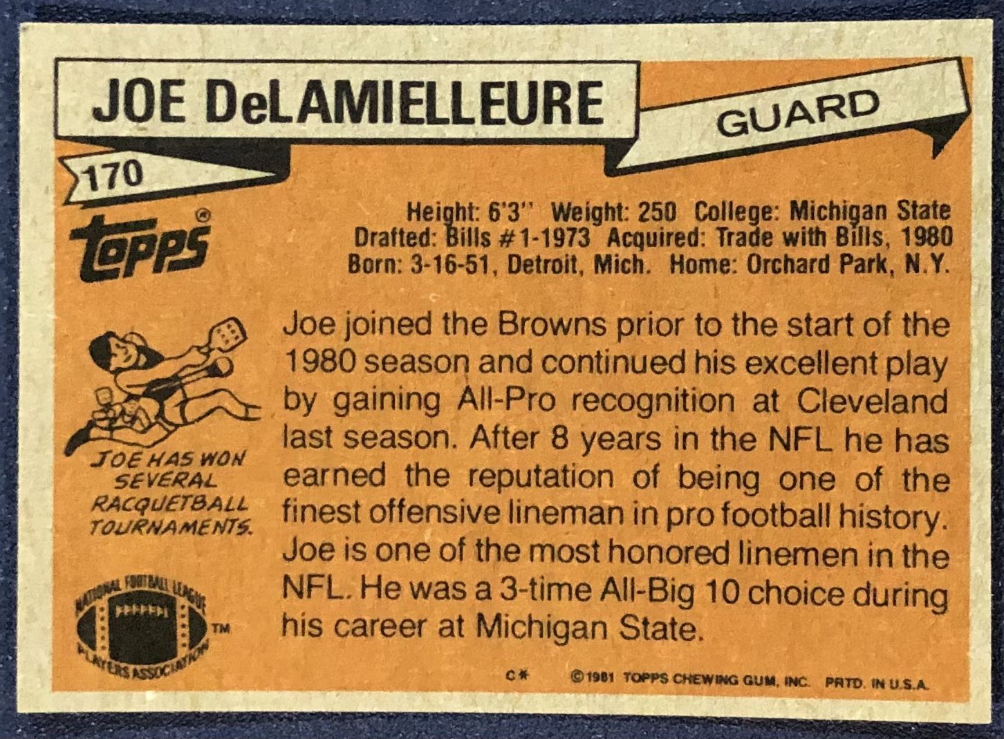Lot 537 1981 TOPPS NFL JOE DeLAMIELLEURE (HOF)