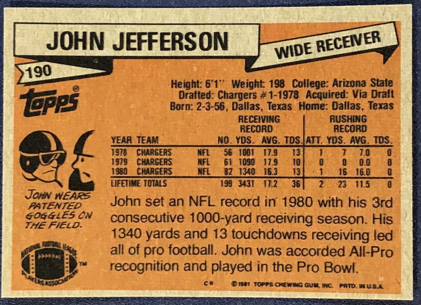 Lot 539 1981 TOPPS NFL JOHN JEFFERSON