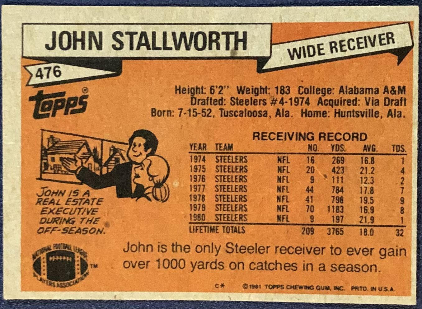 Lot 544 1981 TOPPS NFL JOHN STALLWORTH (HOF)