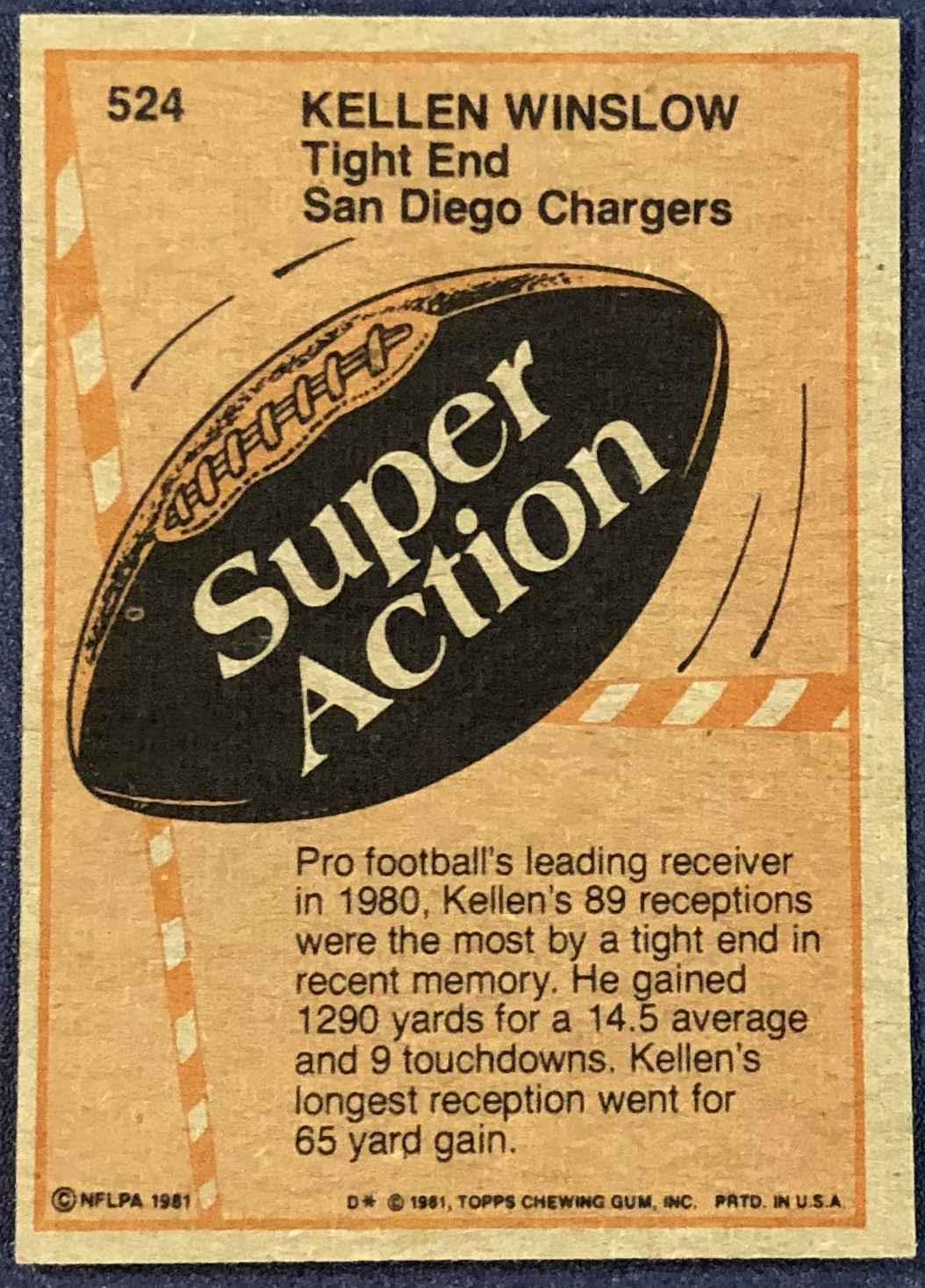 Lot 545 1981 TOPPS NFL KELLEN WINSLOW (HOF)