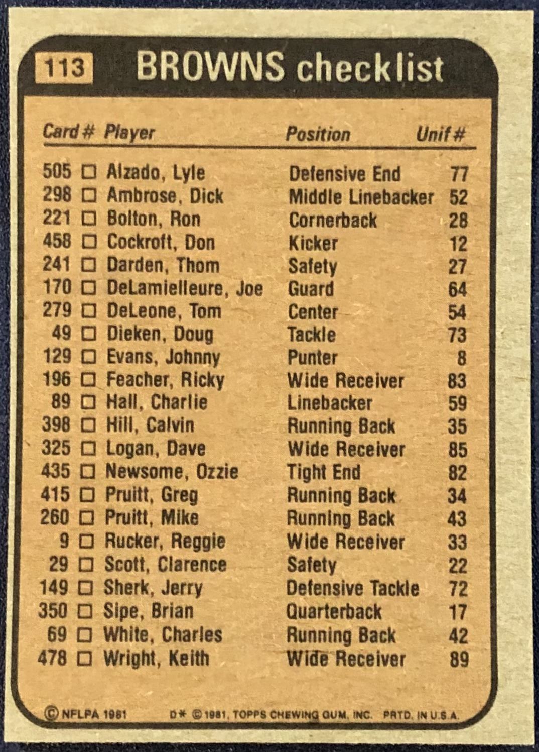 Lot 554 1981 TOPPS NFL LYLE ALZADO