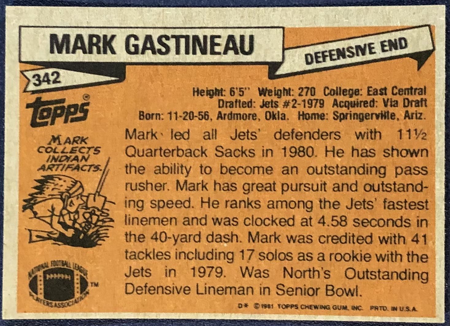 Lot 558 1981 TOPPS NFL MARK GASTINEAU