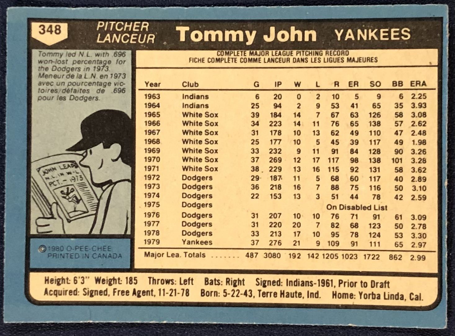 Lot 609 1980 O-PEE-CHEE TOMMY JOHN