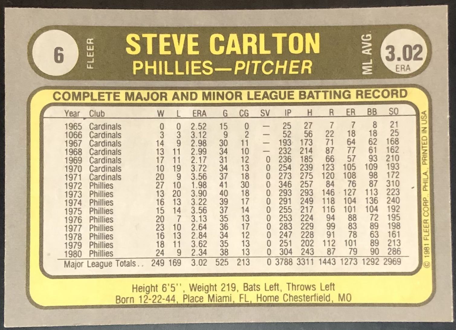 Lot 618 1981 FLEER STEVE CARLTON (HOF)