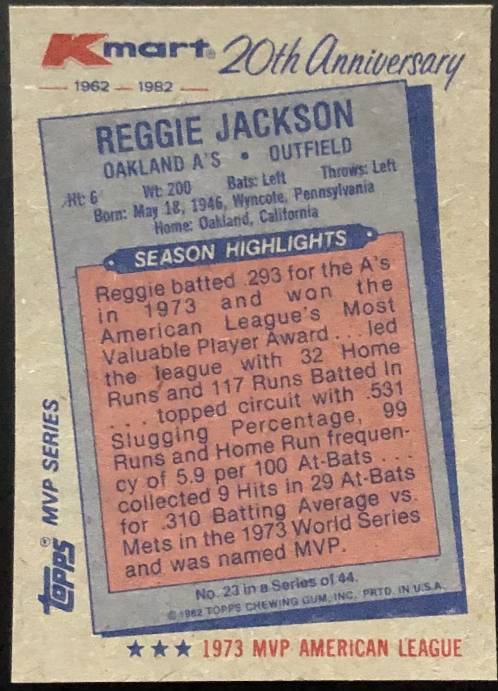 K-Mart 20th Anniversary card #23 baseball, MLB, vintage, hall of fame