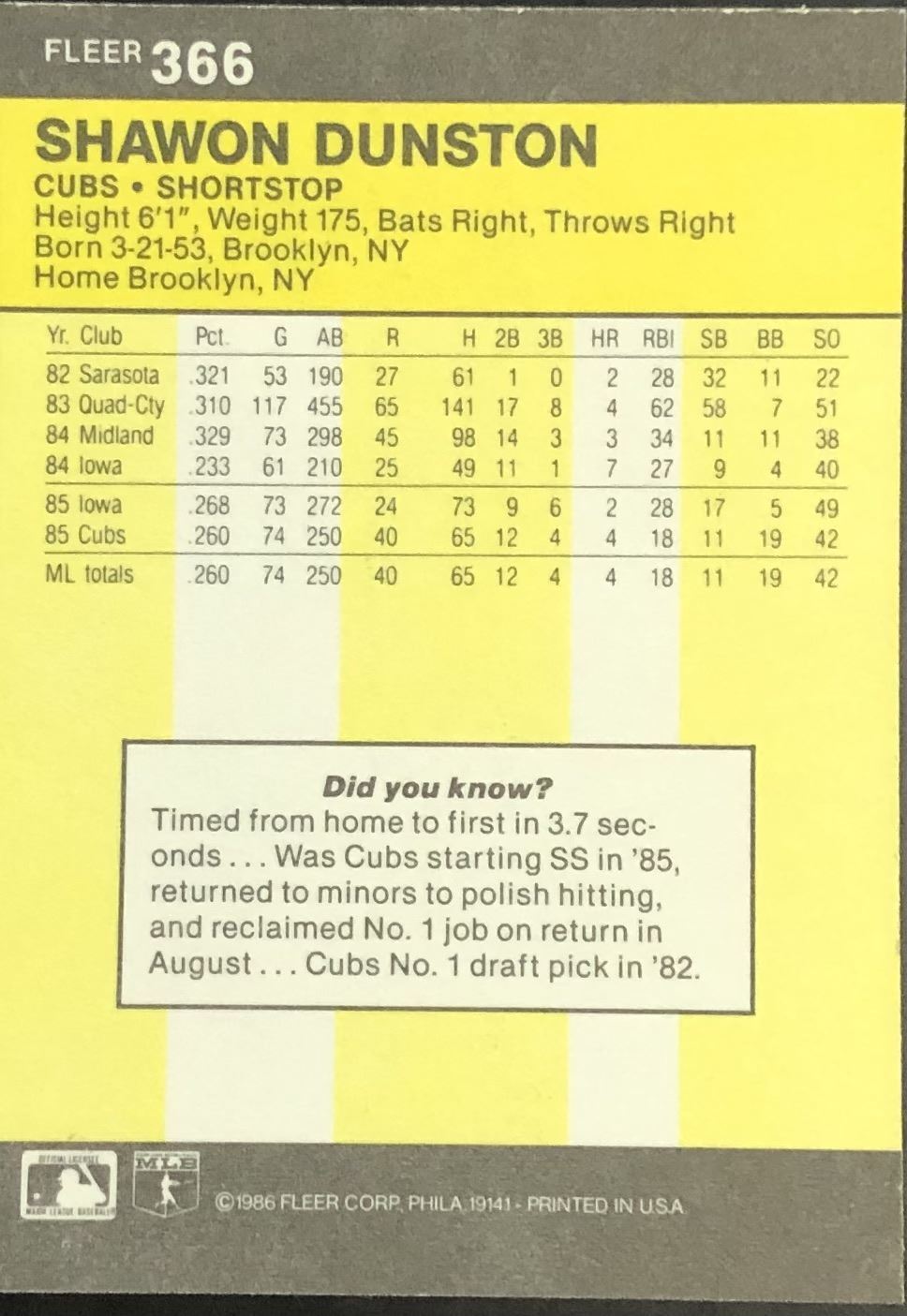 Lot 640 1986 FLEER SHAWON DUNSTON ROOKIE CARD