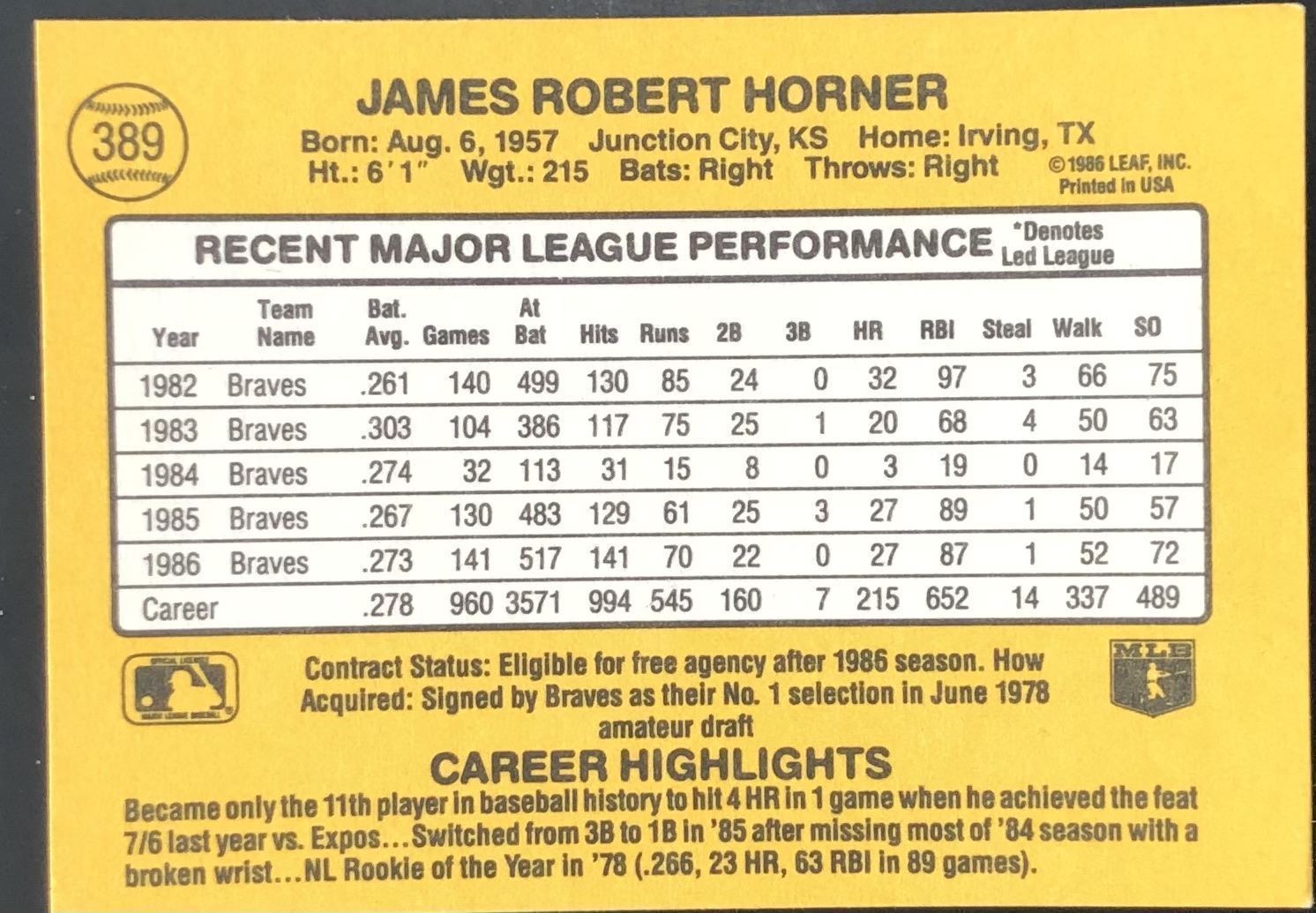 Lot 645 1987 DONRUSS BOB HORNER