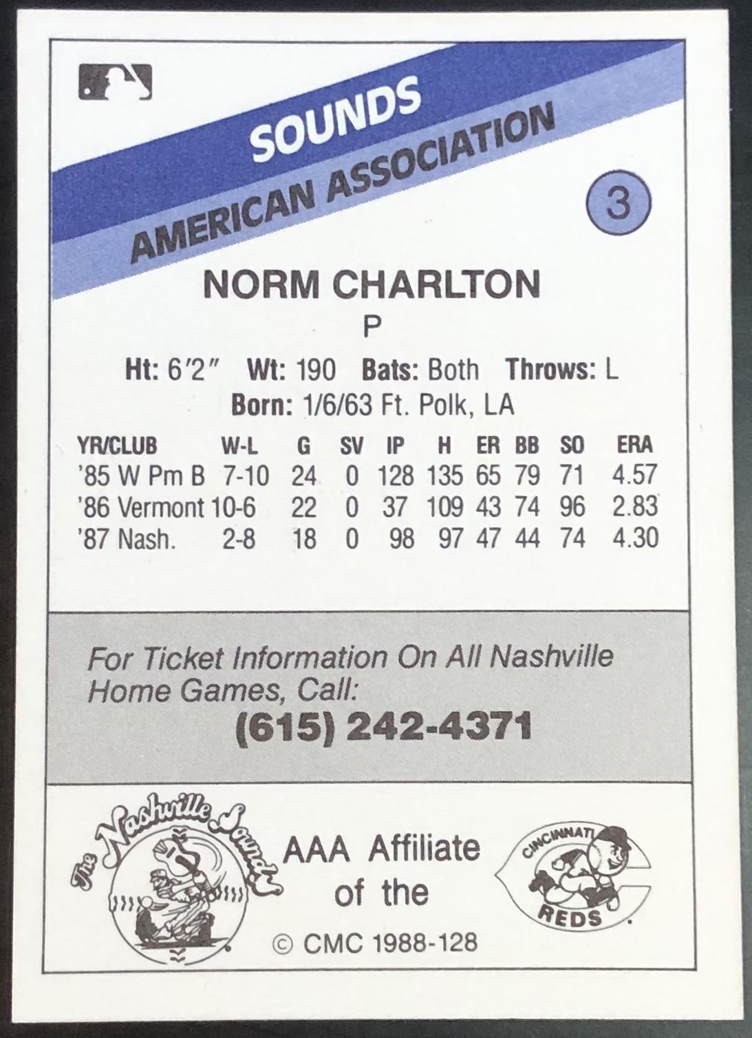 Lot 656 1988 CMC NORM CHARLTON MINOR LEAGUE CARD