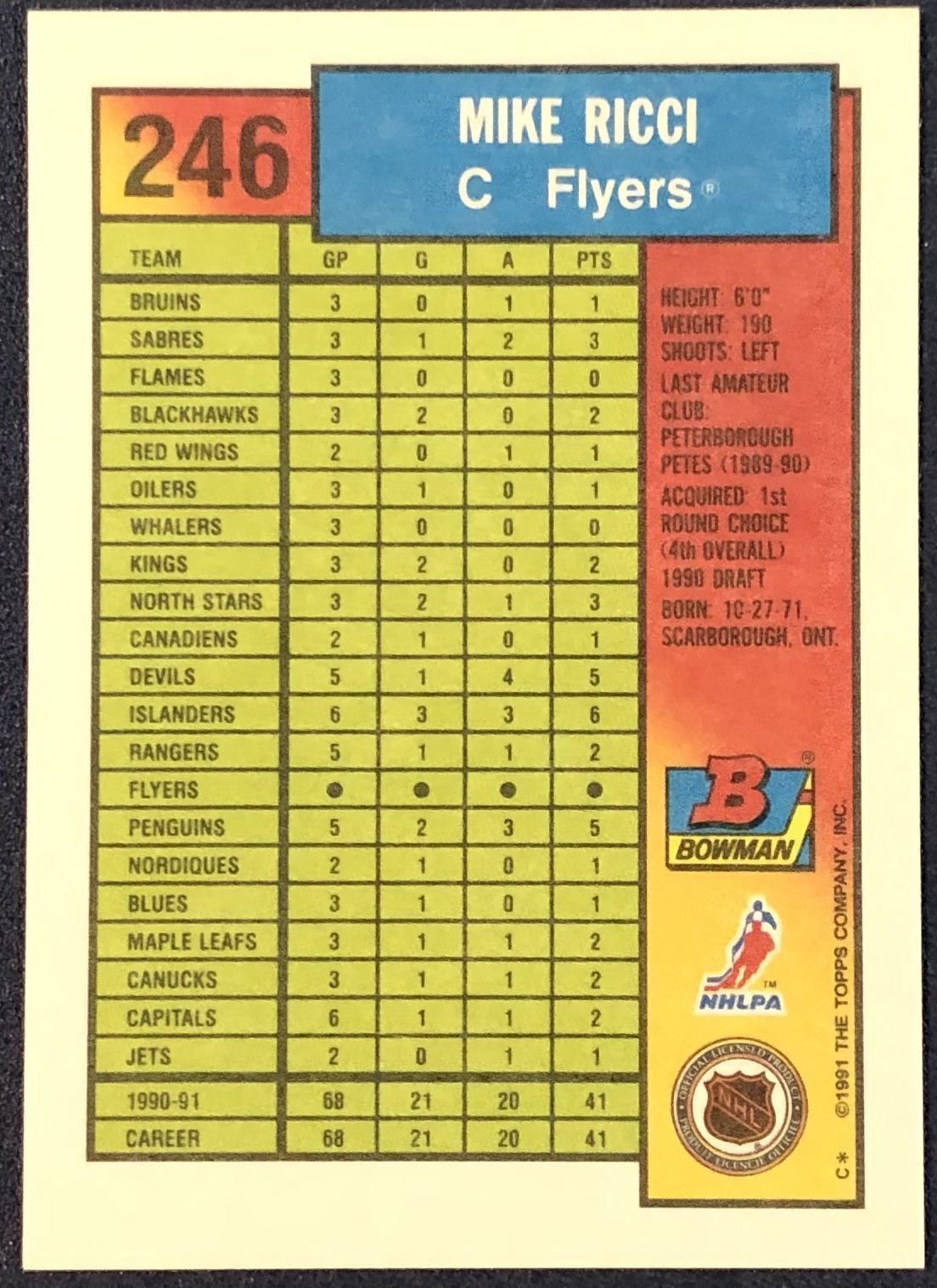 Lot 705 1991-92 BOWMAN MIKE RICCI ROOKIE CARD