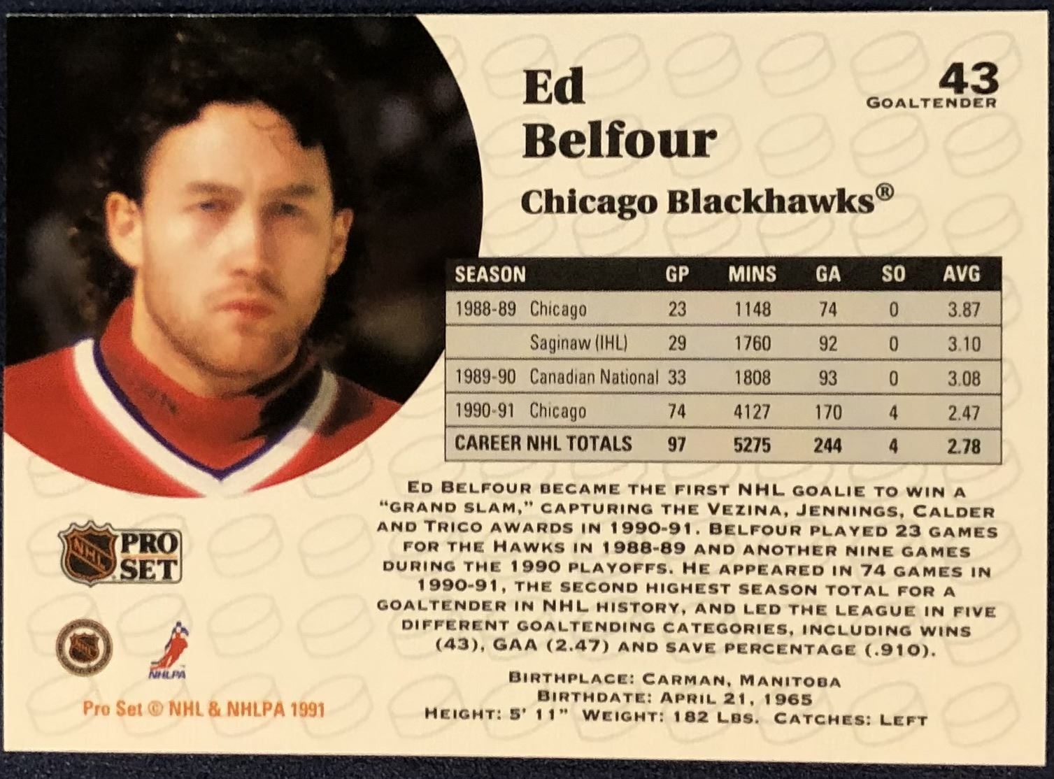 Lot 714 1991-92 PRO SET ED BELFOUR (HOF) ROOKIE CARD