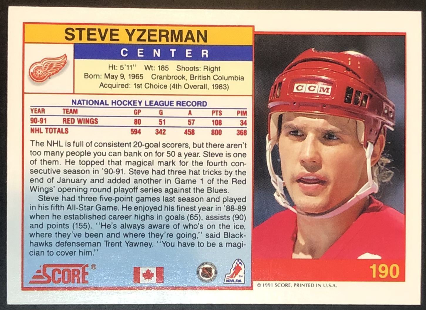 Lot 731 1991-92 SCORE STEVE YZERMAN (HOF)