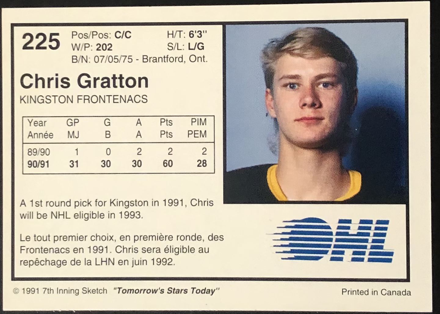 Lot 781 1991-92 7th INNING SKETCH CHRIS GRATTON JUNIOR CARD