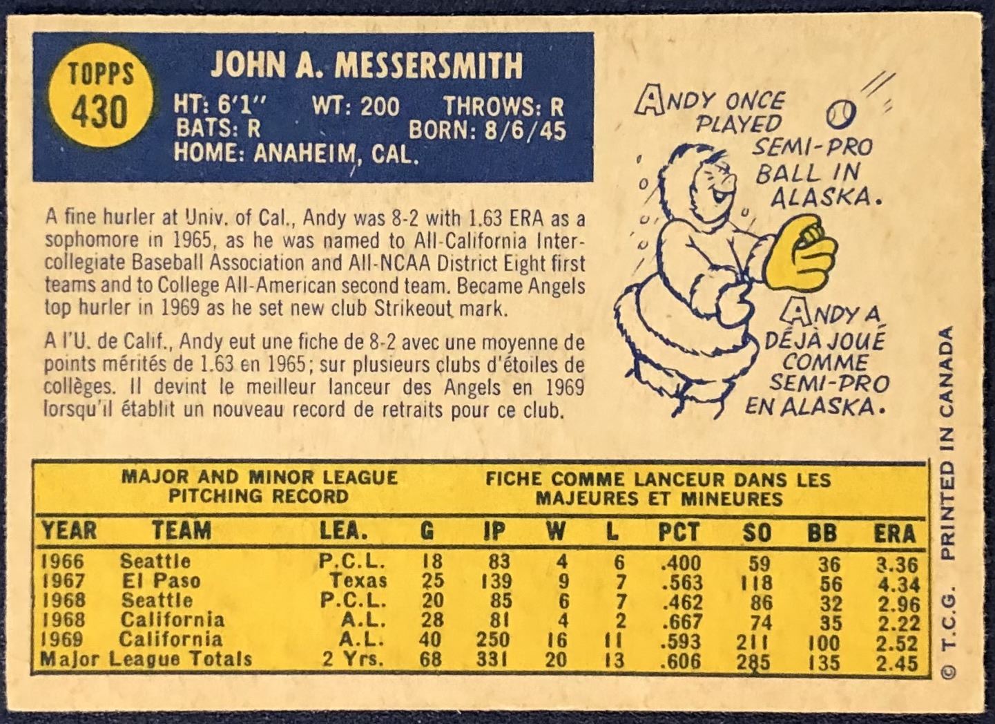 Lot 798 1970 O-PEE-CHEE ANDY MESSERSMITH