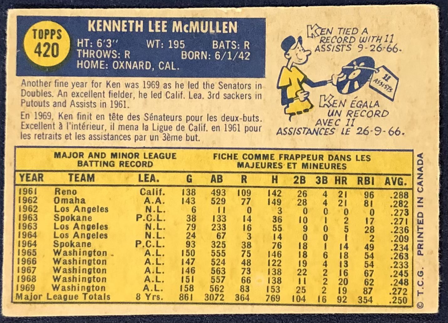 Lot 817 1970 O-PEE-CHEE KEN McMULLEN