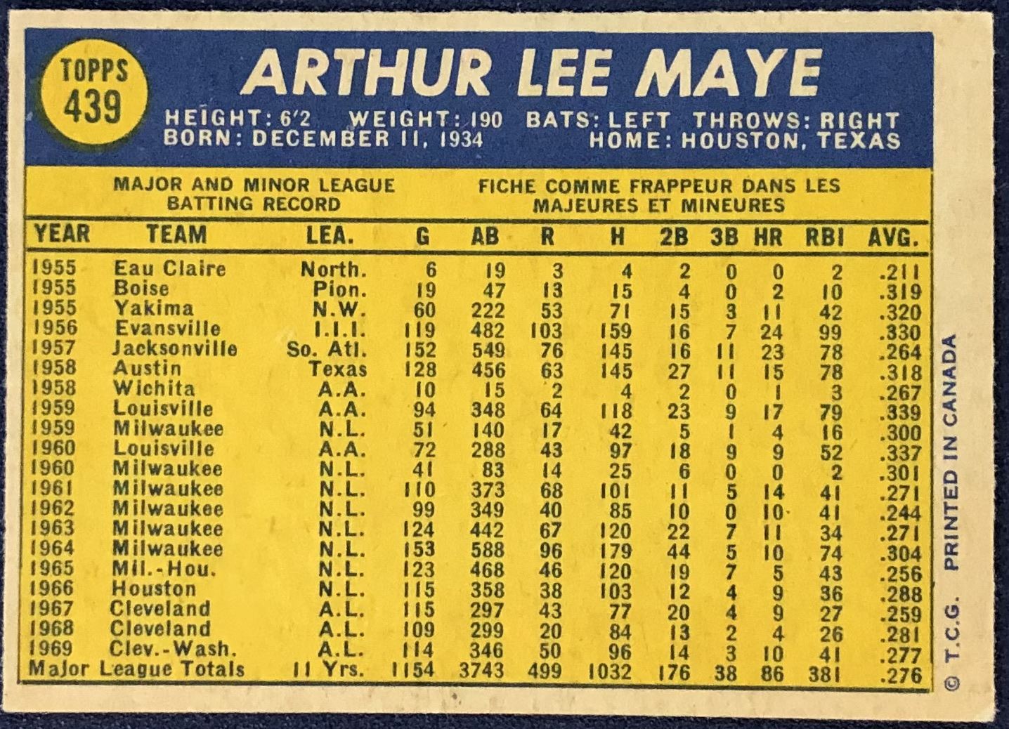 Lot 819 1970 O-PEE-CHEE LEE MAYE