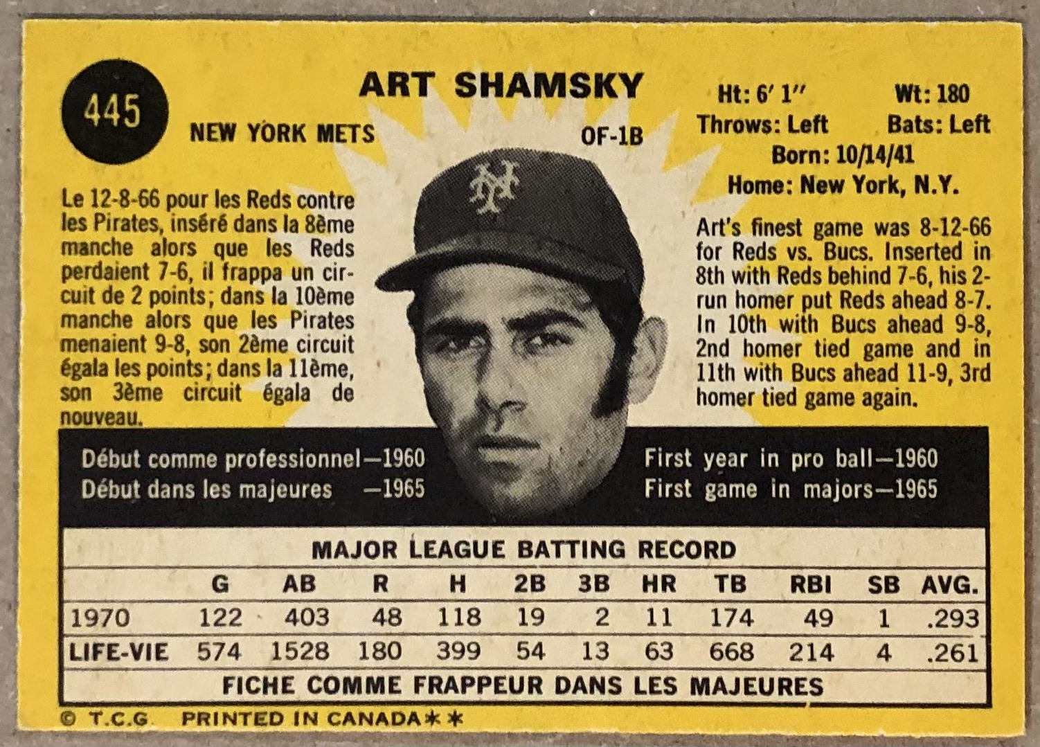 Lot 831 1971 O-PEE-CHEE ART SHAMSKY