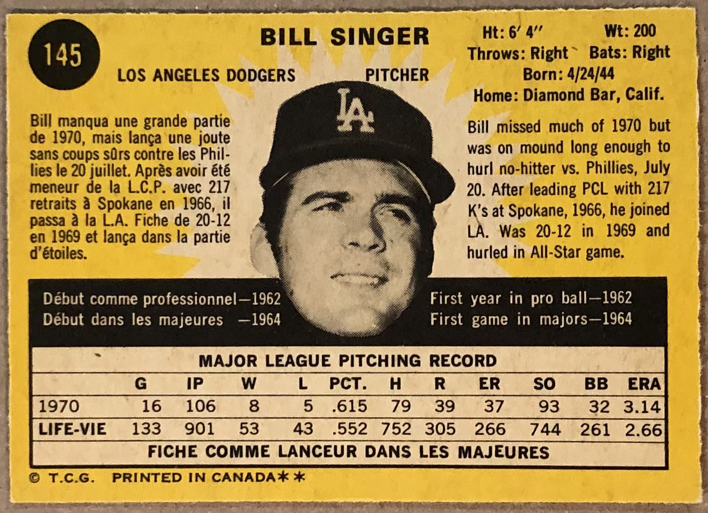 Lot 834 1971 O-PEE-CHEE BILL SINGER