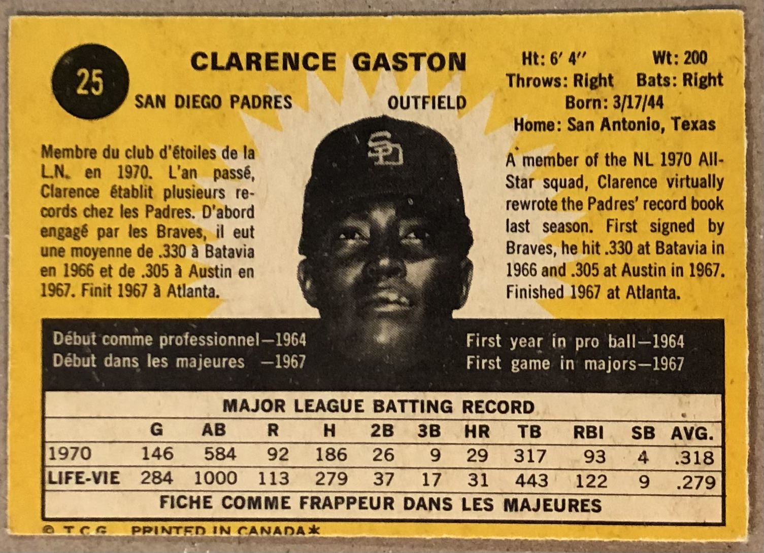 Lot 843 1971 O-PEE-CHEE CITO GASTON
