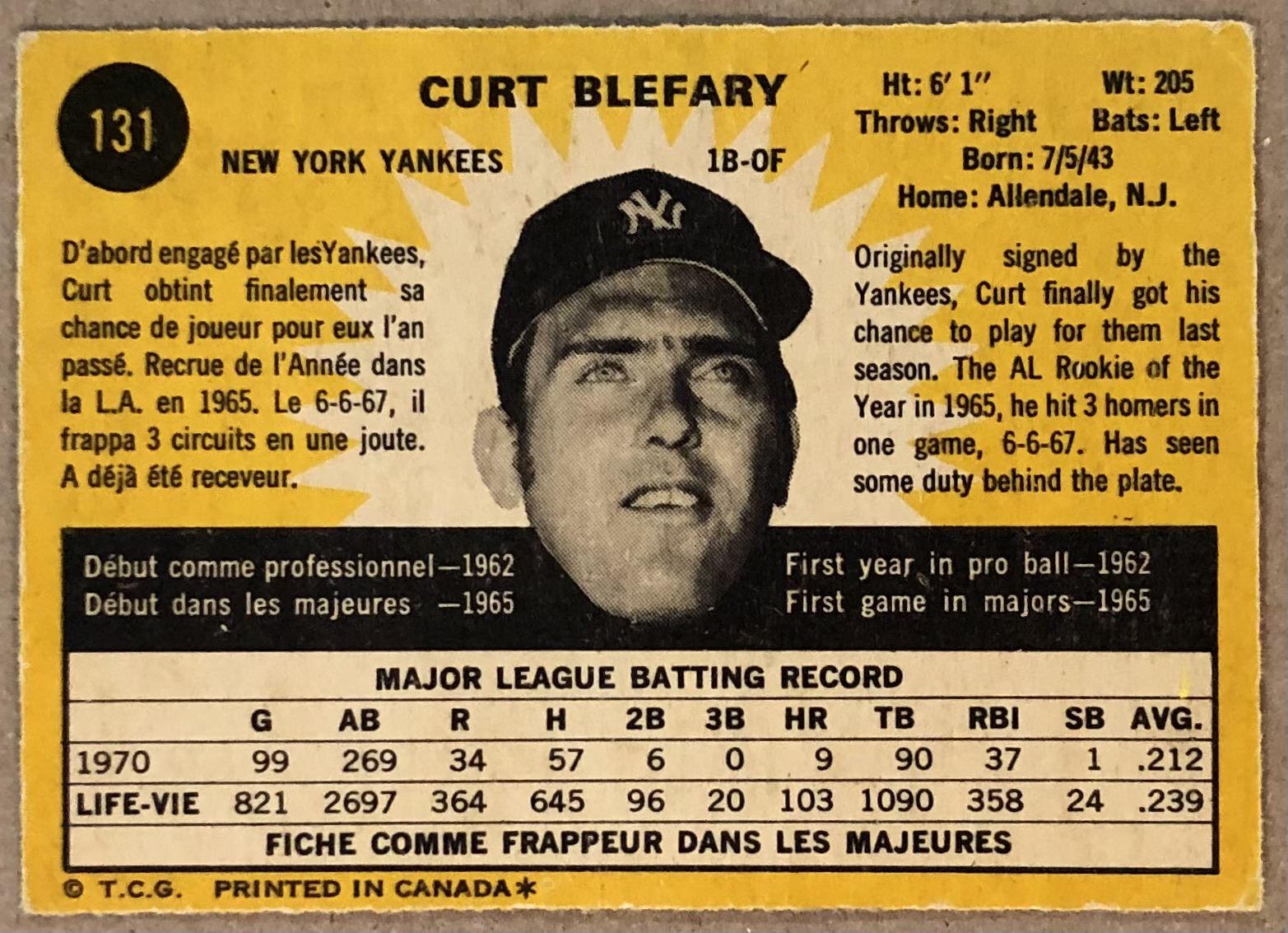 Lot 844 1971 O-PEE-CHEE CURT BLEFARY
