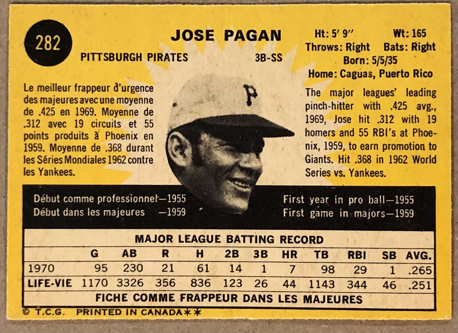 Lot 859 1971 O-PEE-CHEE JOSE PAGAN