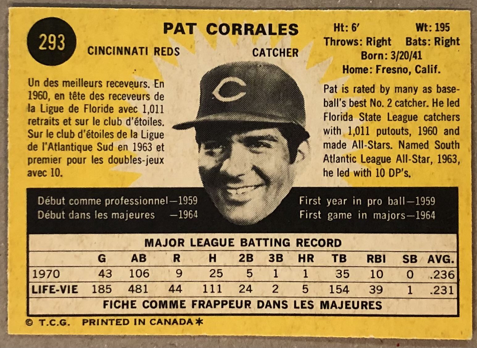 Lot 871 1971 O-PEE-CHEE PAT CORRALES