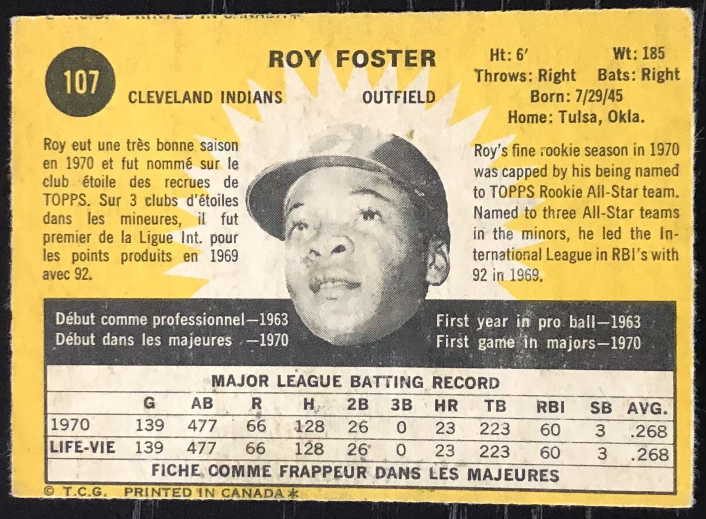 Lot 875 1971 O-PEE-CHEE ROY FOSTER ROOKIE CARD