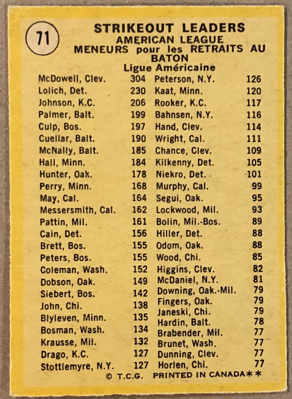Lot 880 1971 O-PEE-CHEE STRIKEOUT LEADERS