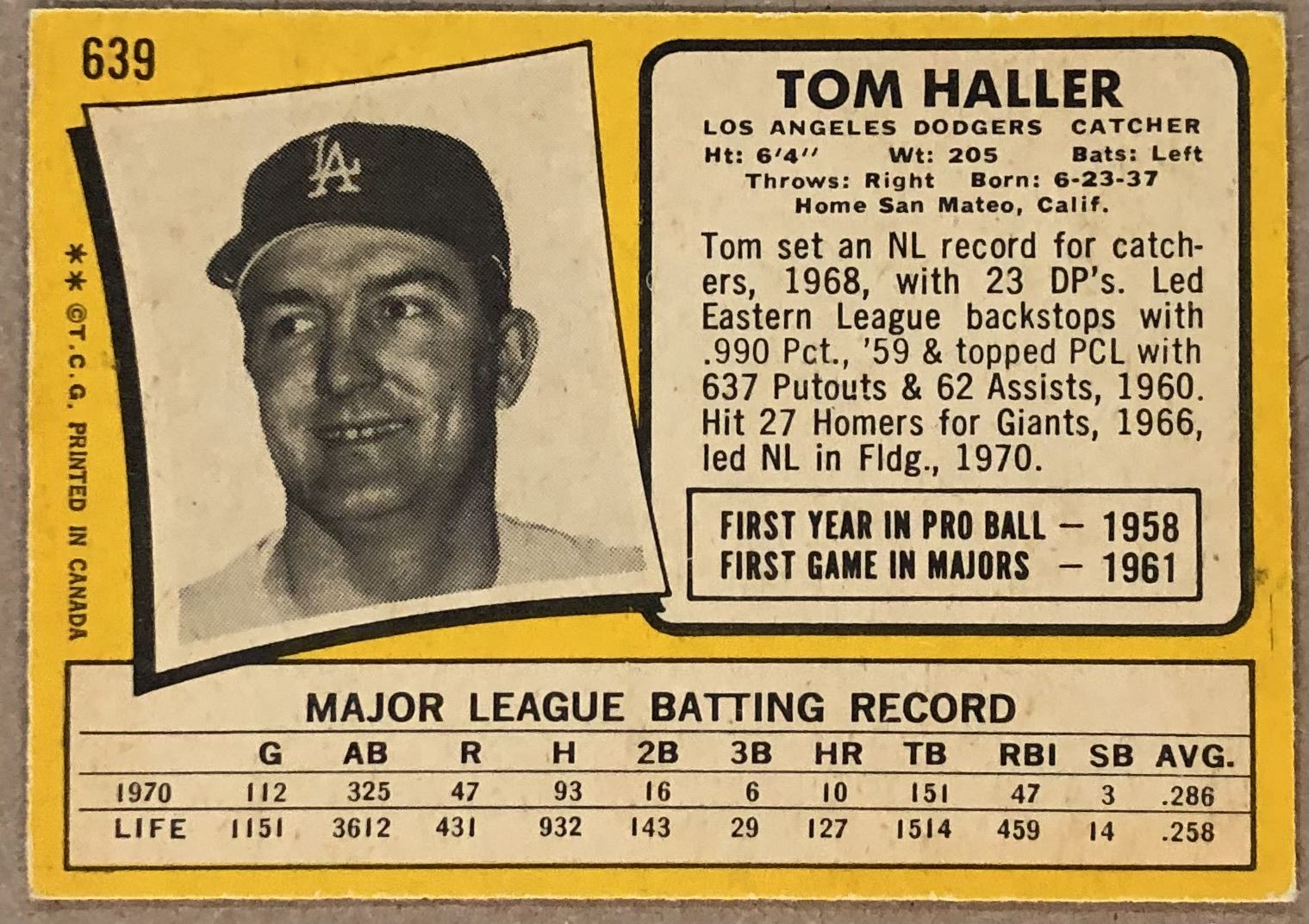 Lot 882 1971 O-PEE-CHEE TOM HALLER