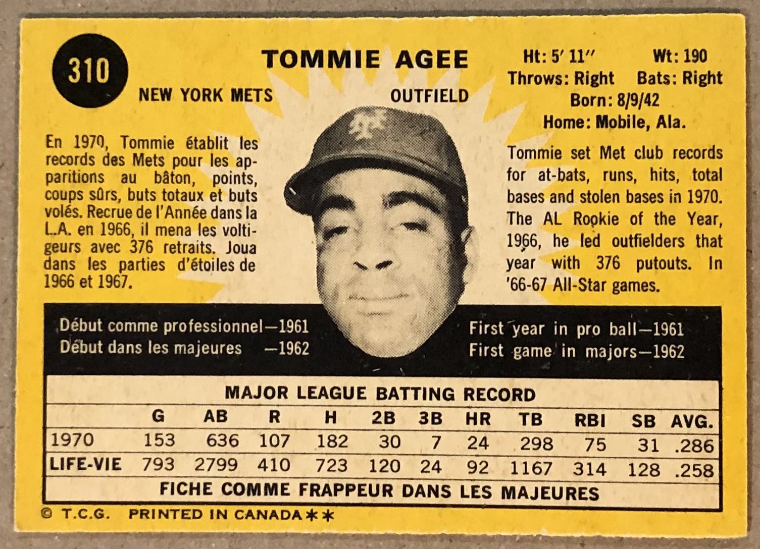 Lot 883 1971 O-PEE-CHEE TOMMIE AGEE