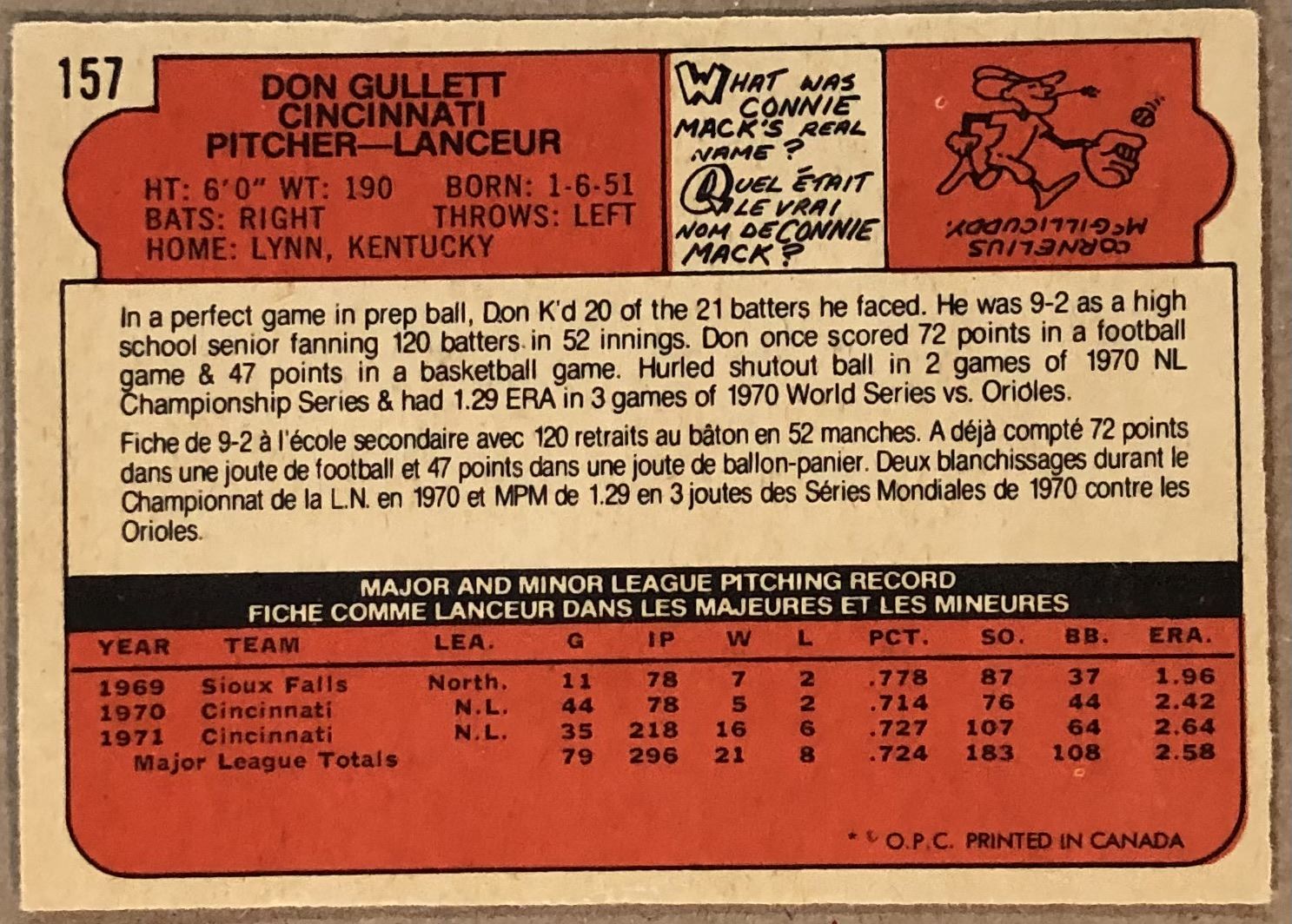 Lot 904 1972 O-PEE-CHEE DON GULLETT