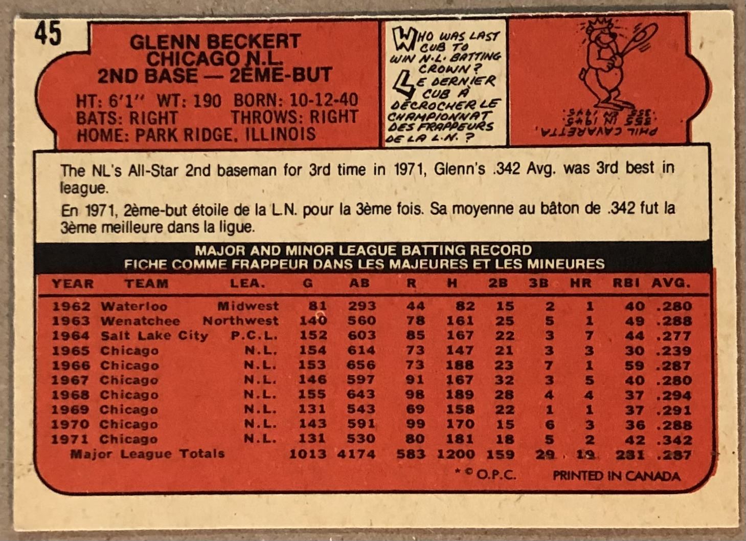 Lot 906 1972 O-PEE-CHEE GLENN BECKERT