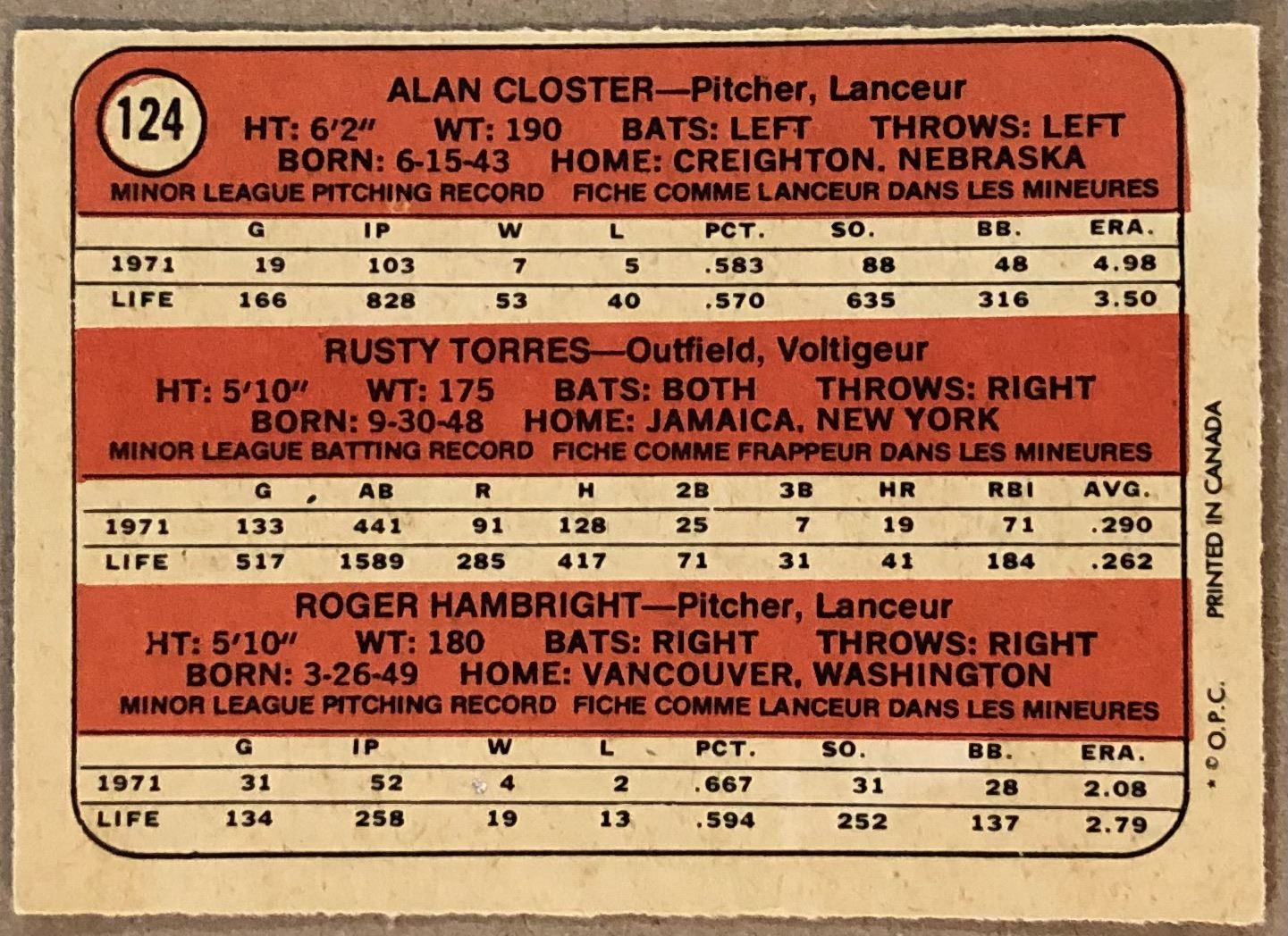 Lot 918 1972 O-PEE-CHEE RUSTY TORRES ROOKIE CARD