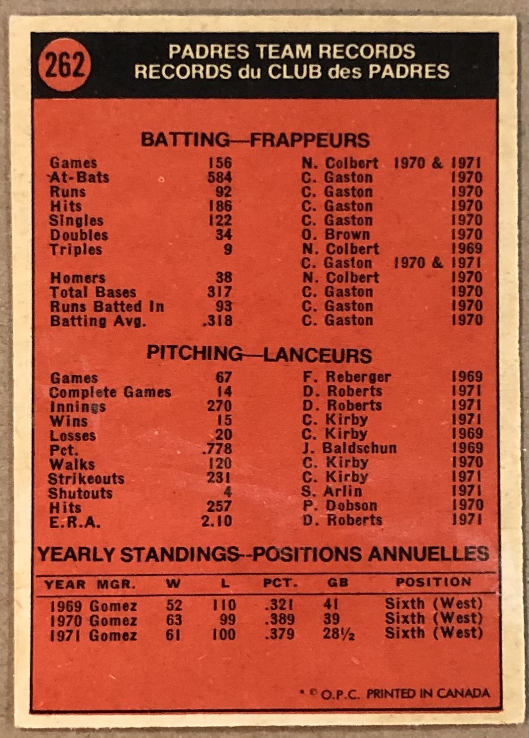 Lot 919 1972 O-PEE-CHEE SAN DIEGO PADRES