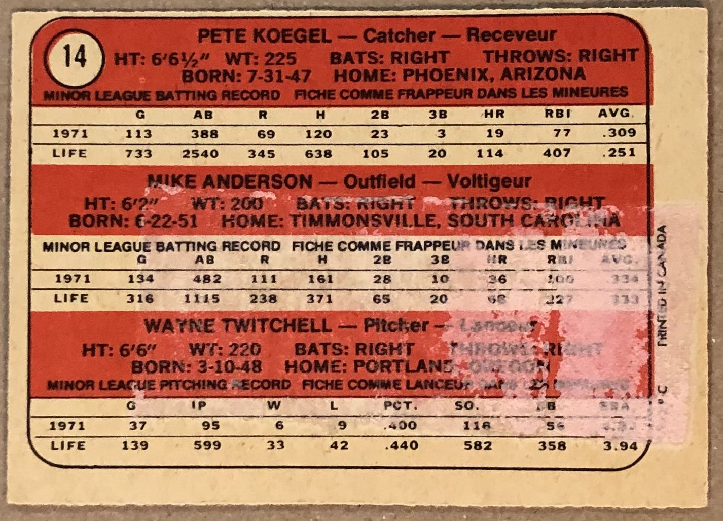 Lot 925 1972 O-PEE-CHEE WAYNE TWITCHELL ROOKIE CARD