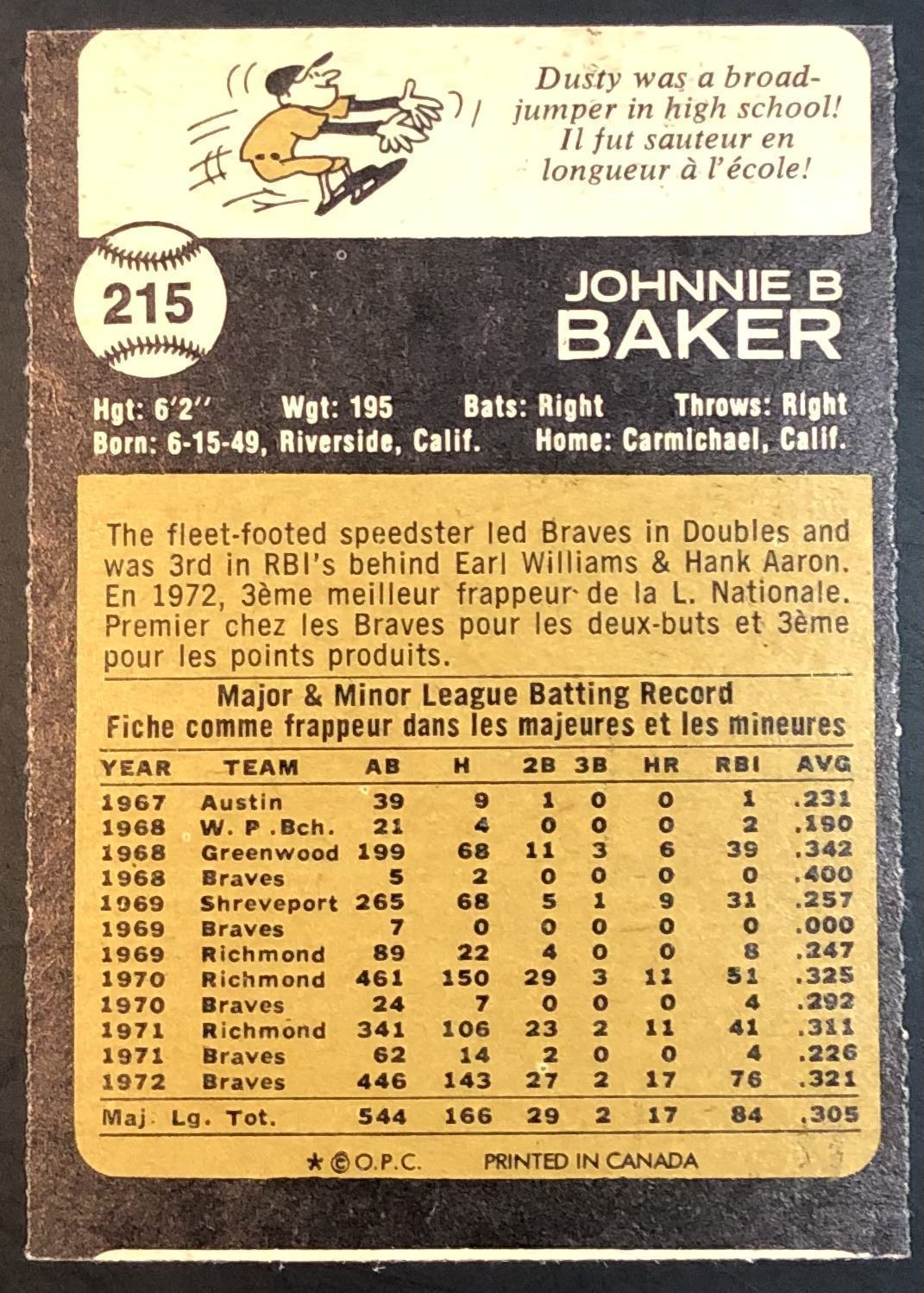 Lot 944 1973 O-PEE-CHEE DUSTY BAKER